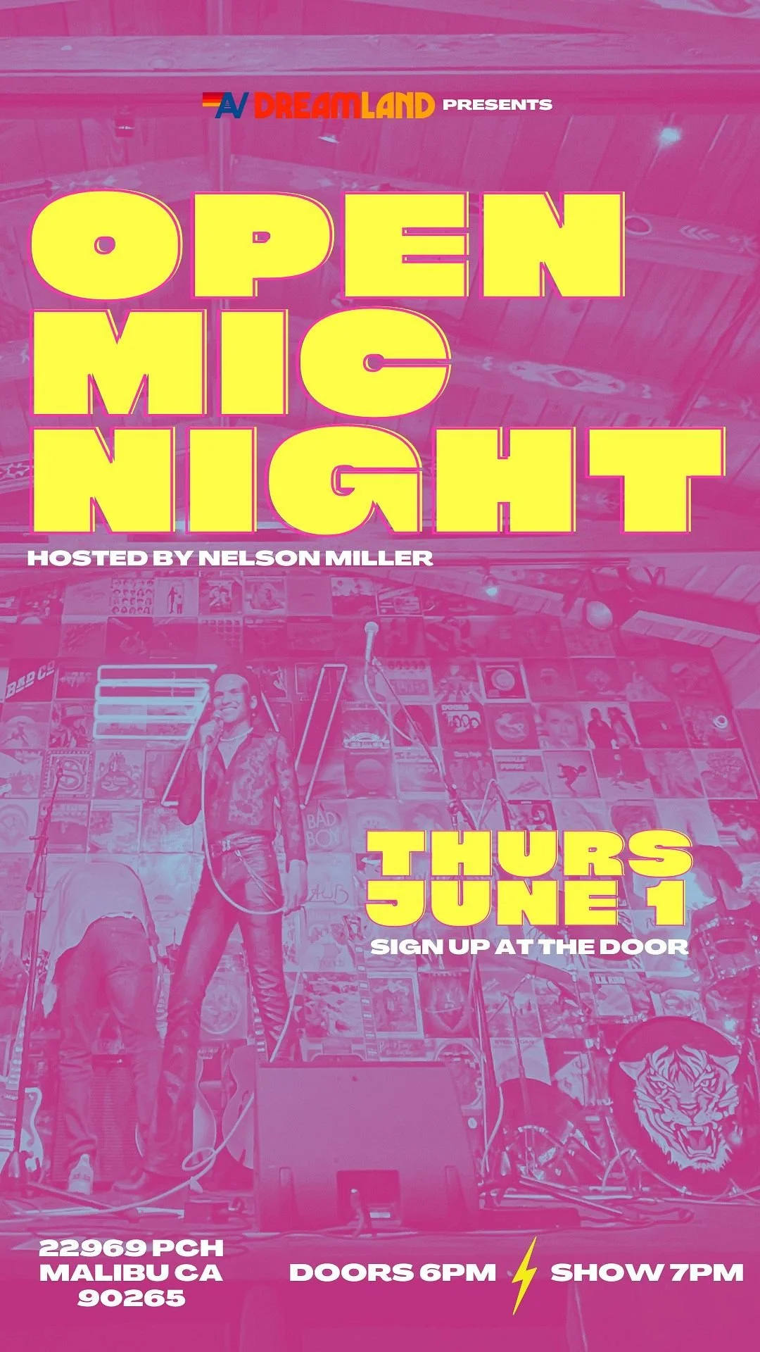Open Mic Night @ DREAMLAND Thursday, June 1, 2023 6:00 PM 10:59 PM 18:00 22:59 Google Calendar ICS Hosted by Nelson Miller!RSVP ONLINE OR SIGNUP AT THE DOOR!